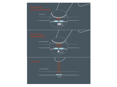 光学压力传感技术通过检测外力作用于标准控制面板时产生的形变量,可实现与各类表面的高度集成。该技术尤其适用于对测量精度和系统可靠性有严苛要求,且需规避设计复杂化或空间占用的应用场景。采用光学压力传感界面的表面控制组件展现卓越的可靠性优势,因其在粉尘污染、液体浸润及戴手套操作等严苛工况下仍能保持稳定性能。